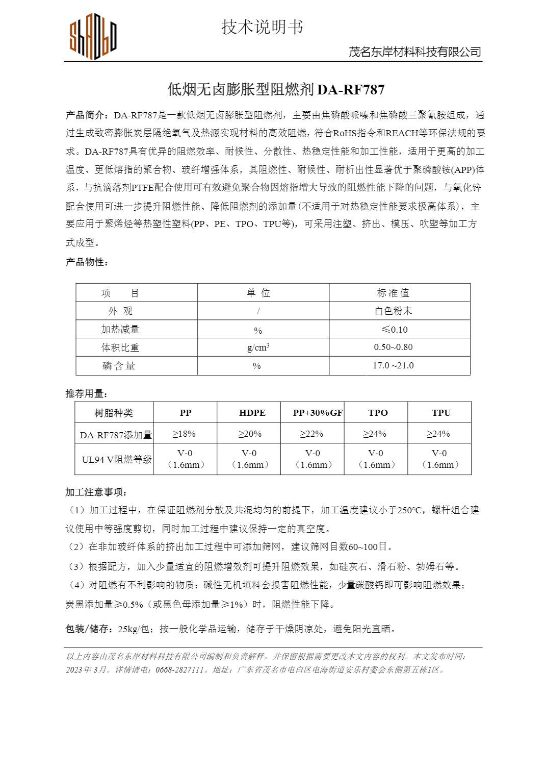 茂名東岸材料科技有限公司是一家主要從事抗靜電劑、無(wú)鹵環(huán)保型阻燃劑、聚烯烴成核劑等新材料研發(fā)生產(chǎn)的高科技技術(shù)公司,是由無(wú)鹵環(huán)保型阻燃劑研發(fā)者創(chuàng)立,核心技術(shù)團(tuán)隊(duì)有3位博士,是中國(guó)重要的無(wú)鹵環(huán)保型阻燃新材料生產(chǎn)企業(yè)之一......